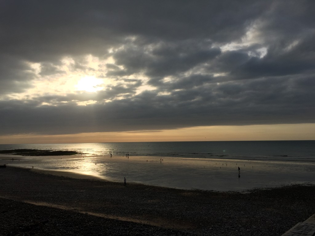 Difficile d’imaginer qu’en 1940, se déroulèrent des combats violents entre les tanks de Rommel et les soldats écossais pris au piège, sur cette plage encore un peu sauvage où nous nous baignons ce soir, dans un rayon de soleil qui déchire les nuages.
