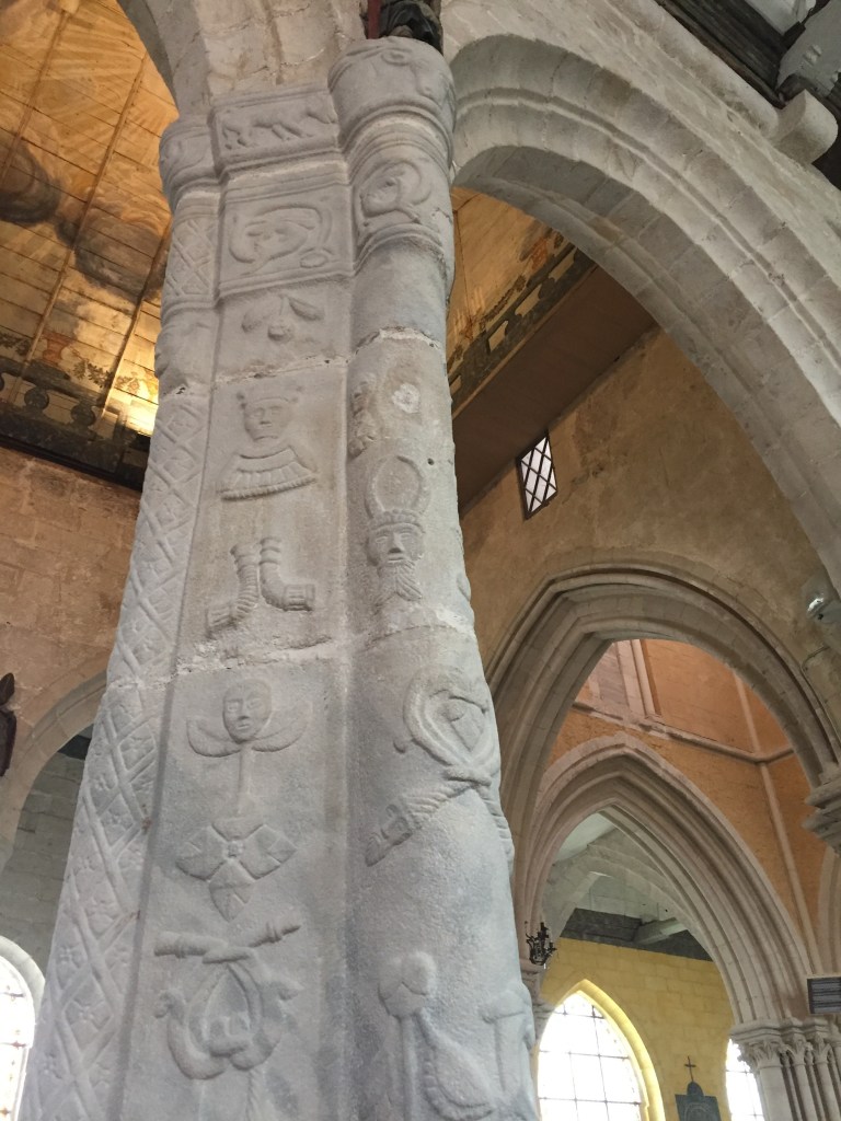 Les étranges piliers sculptés de son église.
