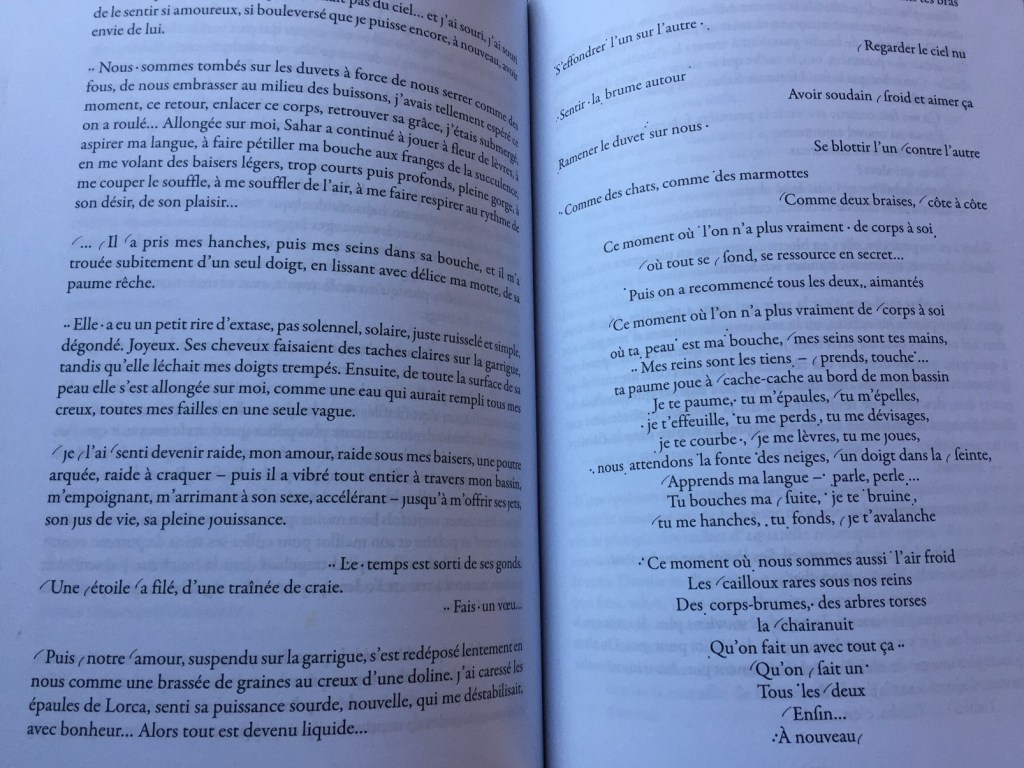 La recherche romanesque sur la narration : il parvient à individualiser la voix de chacun de ces six narrateurs, (Lorca, Sahar, Saskia, Agüero, Nèr, Tony Tout-Fou), dont la singularité est soulignée par ces signes de ponctuation différents qui envahissent furtivement le paragraphe lorsque le personnage vit un moment de découverte intense, un moment de « furtivité » (et chapeau au travail de la maison d’édition, La Volte, qui suit Damasio dans ses inventions et ses délires).