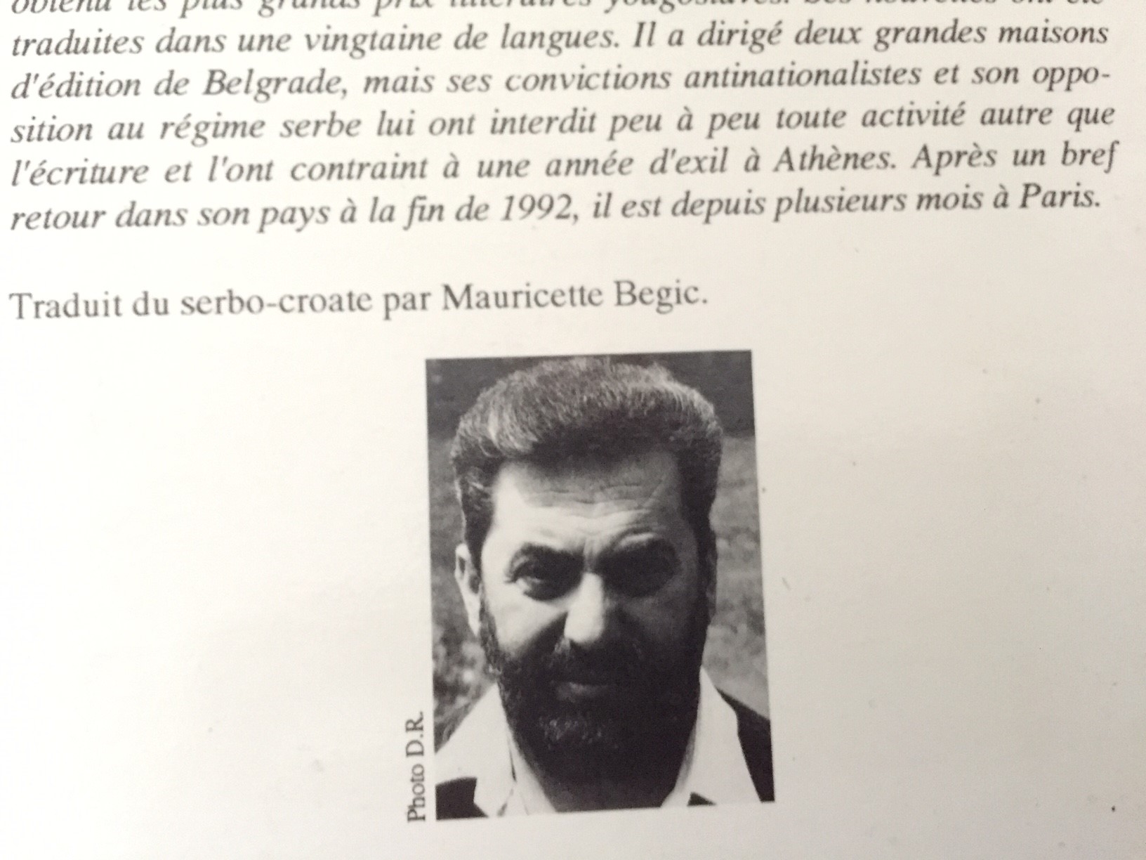 Lors de sa première lecture nocturne de la Neige et les Chiens, mon jeune metteur en scène Christian est fasciné aussi par le visage de l’auteur serbe qu’il découvre sur la quatrième de couverture.